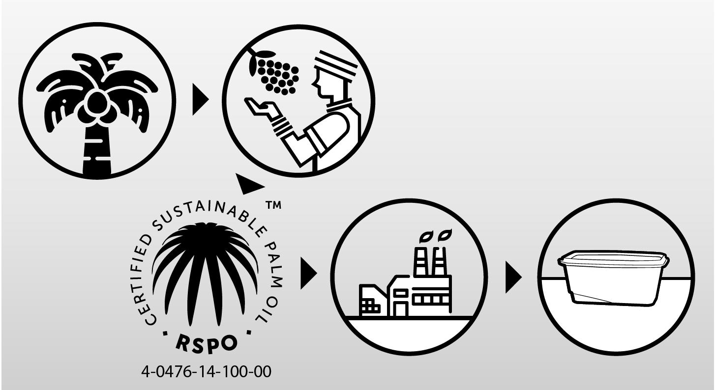 100 % d’huile de palme certifiée physique (RSPO MB) atteinte dès 2022.